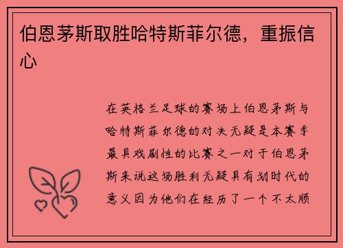 伯恩茅斯取胜哈特斯菲尔德,重振信心